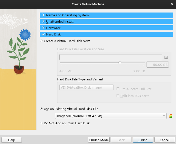 Convert the image from RAW to .VDI (Virtual Disk Image)